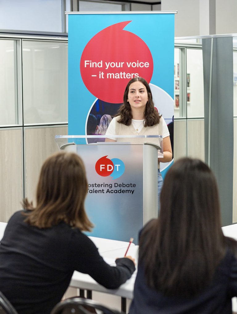 Public speaking is among peoples’ greatest fears. FDT’s Public Speaking program can help students to overcome this fear and to have fun while doing so! Unlike Debate, public speaking isn’t always about proving a point. Instead, our Public Speaking classes teach students how to become comfortable with preparing to write, edit, and deliver speeches for a variety of purposes. Our students and instructors have competed in, and won, many speech competitions, while several have gone on to represent Canada at the World’s Individual Public Speaking and Debate Championships. Being able to persuade people through public speaking helps with interviews, paper writing, research, presenting, and so much more. Perhaps most importantly, Public Speaking helps students to enhance their critical thinking abilities that allow debaters to reach high levels of success in all aspects of their lives.